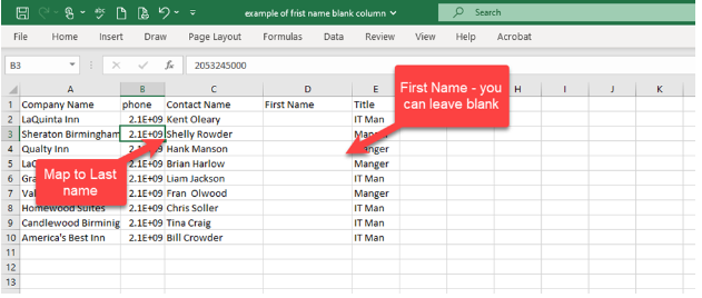 MonsterConnect requires you to map a column to both the first and last names, however you don’t have to separate the names.