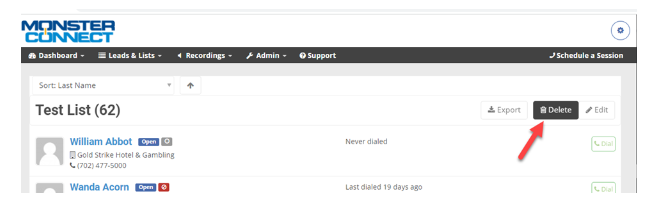 April 21, 2025 Delete List How do I delete a list? Go to Leads & Lists, then Lead List and select the name of your list. The list will open. Select the Delete button to the right. Your list should be deleted.