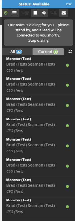 Once you press the "Go" button you will see the calls iniate on the current tab, you will allso see these records highlighted in "Green" on the all tab.