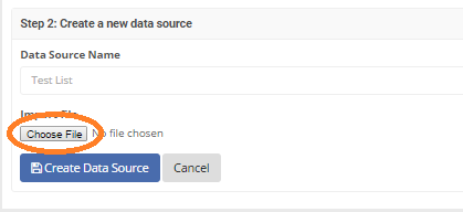 Note: Make sure to Name your data source, and make sure you select a file. If you receive an error, you want to first check to make sure you have your file formated in a .csv