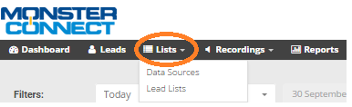 Step 1: Click "Lists Icon" on the admin tab of the MonsterConnect app.
