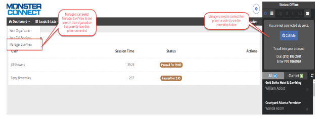 2. Managers must connect their voice by phone or computer audio to see the Eavesdropping button.