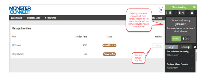 Client Managers can listen and coach any user and Team Managers can listen and coach for users on their team.